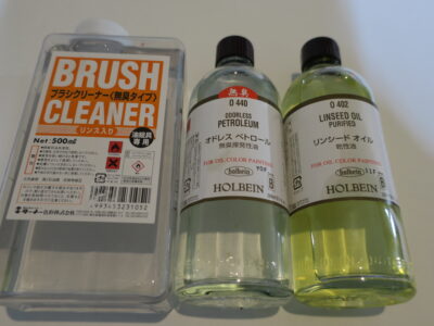 ④筆洗い(無臭タイプ)オドレスぺトロール(無臭)リンシードオイル(これは匂いません)