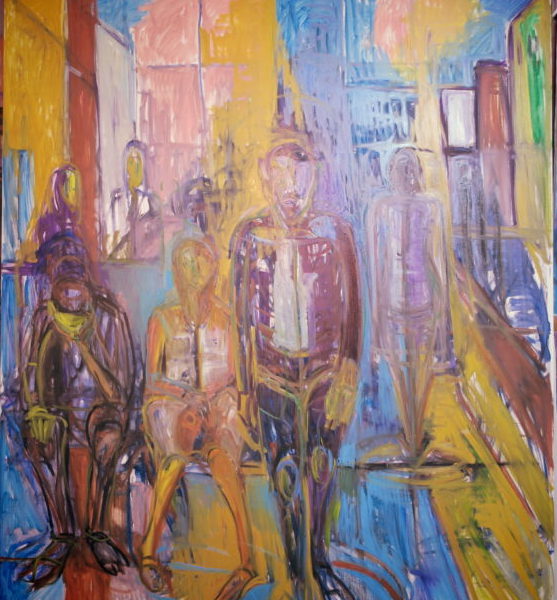 向こう側に向かう女性が難しいです。後ろ姿はとくに難しいですね。あんまりはっきり描く必要はアリマセンが。