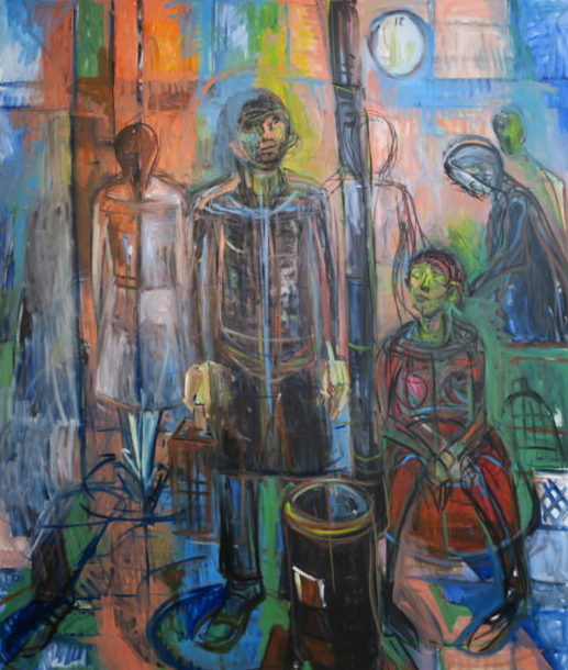 右で座っている女性の横に、鳥かごを描こうと思ってやめました。