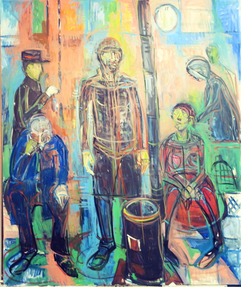 中央の男は、冬の設定なので帽子をかぶせました。鼻の穴と、太い唇で原始的な、アルカイック的な顔にしていく予定です。