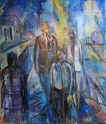 左側は、塀と建物、と、透けた人物。簡単に言えばあんまりはっきり描かなくてもいいのかも。中心の3人をしっかり描いたほうが