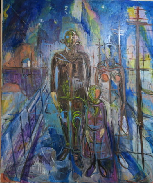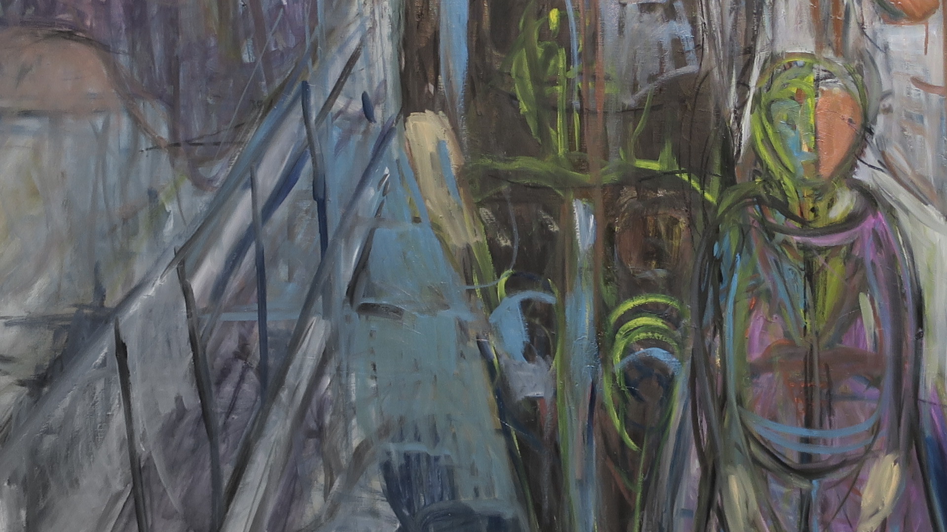 人物もう一人登場しました。手前が子どもなので母親としてもいいのですが。ムンクの「女の四段階」のように、または、ゴーギャンの我々はどこから…のように、一つの画面に、人生のいろいろな段階を盛り込むやり方がありますね。
