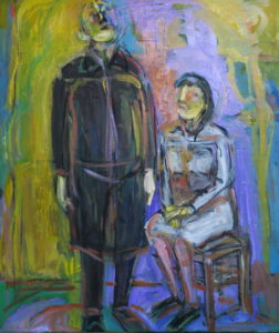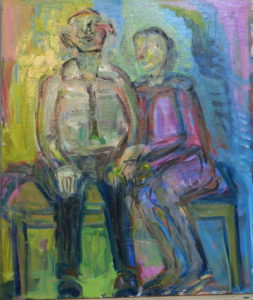 人物一人だと、肖像画ぽくなりますね。肖像画を描くのは恥ずかしいですね。しかし、表現者としては、自分のことも表現しないときが図まないのかもしれません。