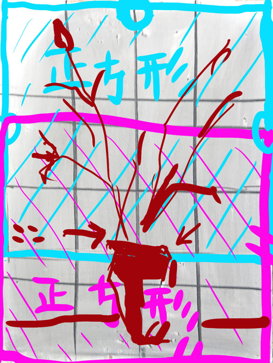 花瓶の壺の中にも、茎がささりこんでいるイメージで、レントゲンのように描いておきます。