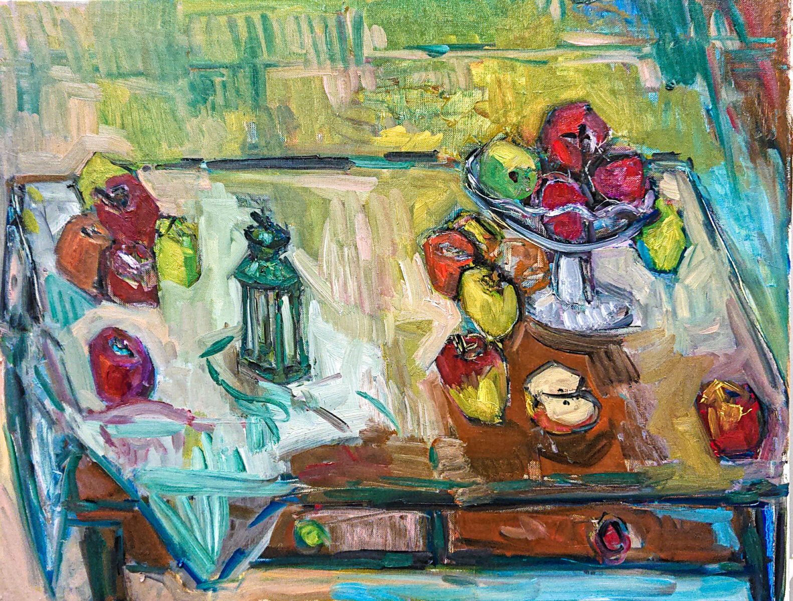 青りんごは、パーマネントグリーン、ビリジャン、と、クロームイエロー