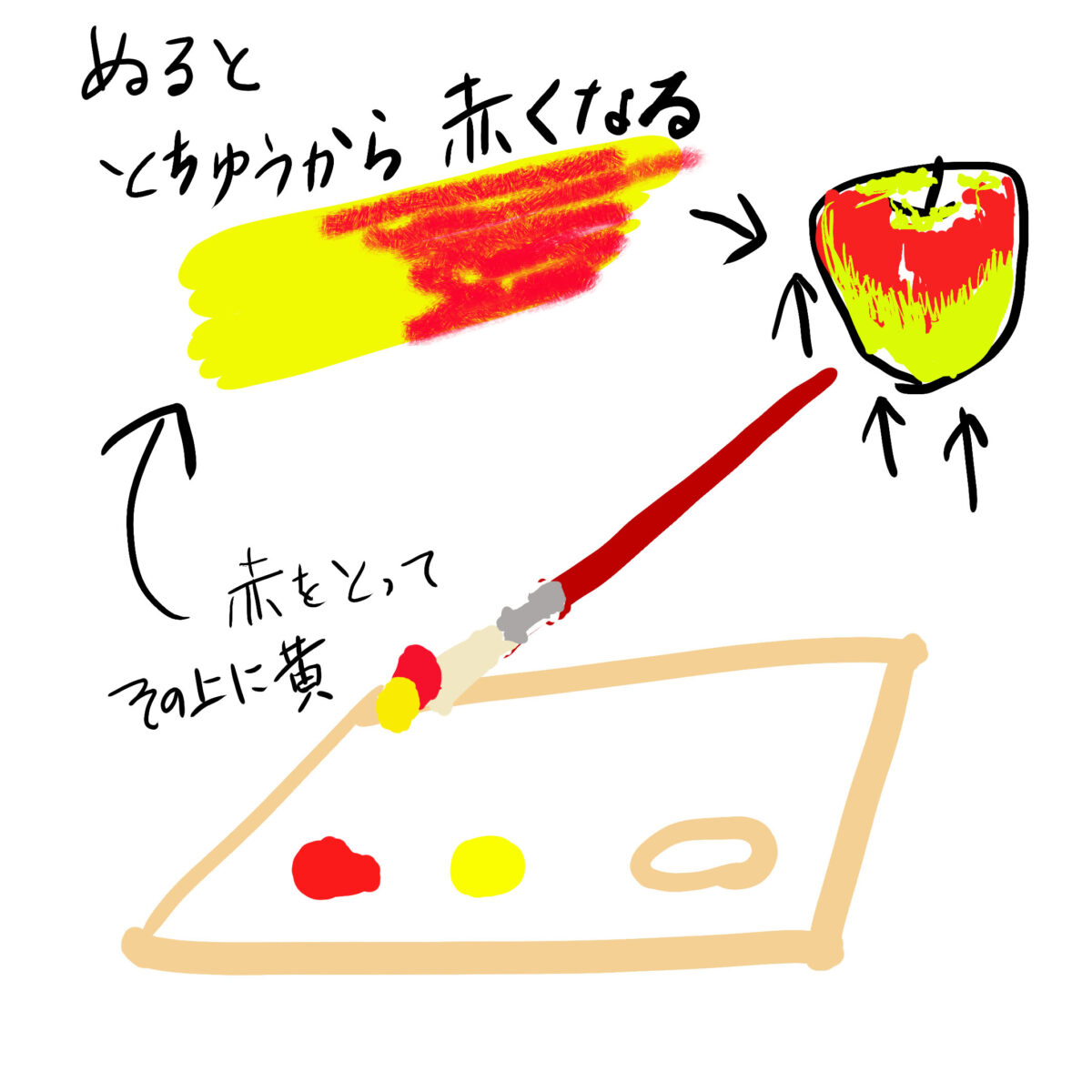 赤いリンゴを描く場合、赤といわれる絵具はたくさんあり、それにオレンジ系統もあります