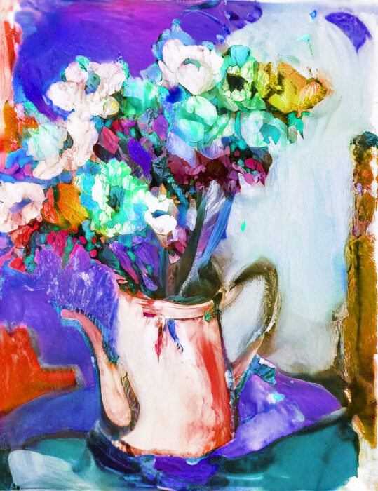 そして、AIテクノロジーにより平板化されたモダンな花のイラスト