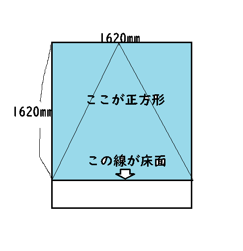 上から1620mmをとると正方形ができます。その正方形の下の線が