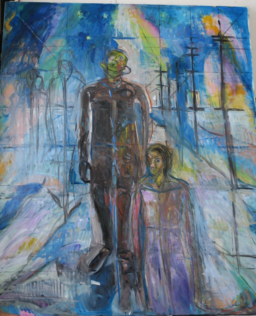 表現主義では自分のいいといったものを、そのまま表現していいので、描きたいものが大きくなったり、筆の勢いで曲がったるすることで、逆に画面に生命感が生まれていく、そんなことが頻繁に起こりますね。